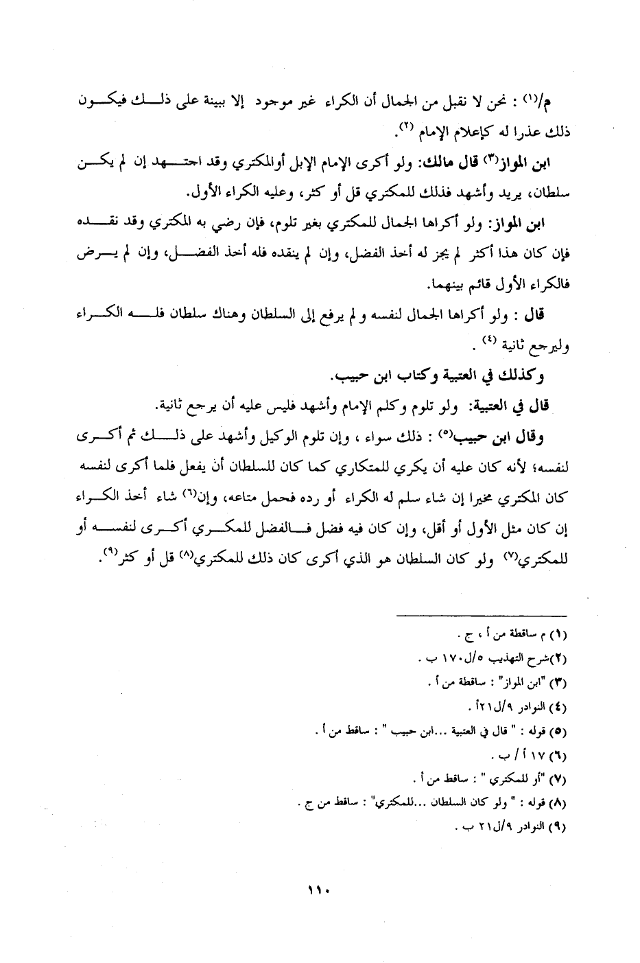 م/: نحن لا نقبل من الجمال أن الكراء غير موجود إلا ببينة على ذلك فيكون ذلك عذراً له كإعلام الإمام.