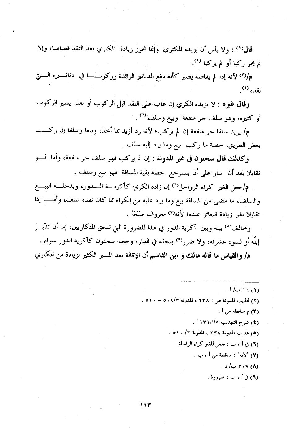 م/ والقياس ما قاله مالك وابن القاسم أن الإقالة بعد المسير الكثير بزيادة من المكاري