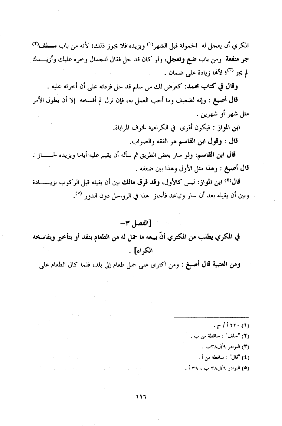 [الفصل 3 - في المكري يطلب من المكتري أن يبيعه ما حمل له من الطعام بنقد أو بتأخير ويفاسخه الكراء]