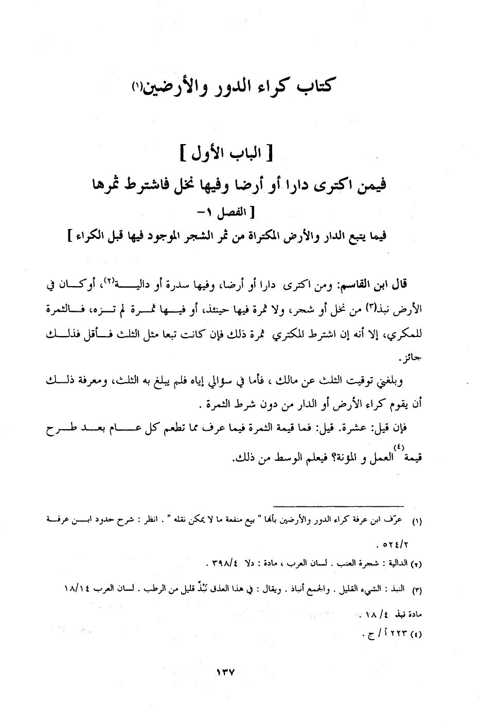] الفصل 1 - فيما يتبع الدار والأرض المكتراة من ثمر الشجر الموجود فيها قبل الكراء [