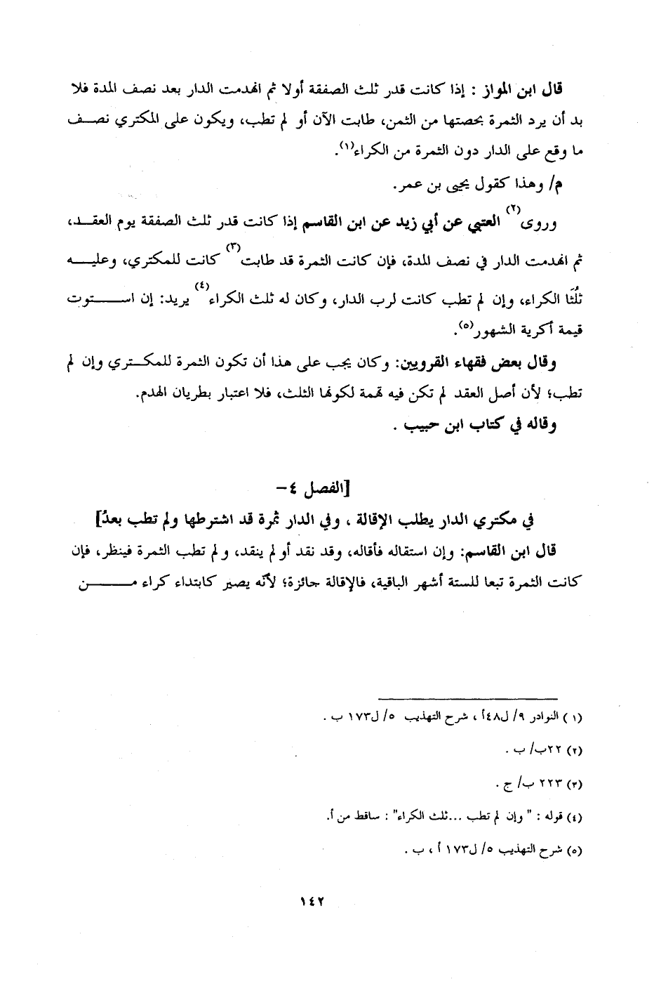 ] الفصل 4 - في مكتري الدار يطلب الإقالة، وفي الدار ثمرة قد اشترطها ولم تطب بعدُ [