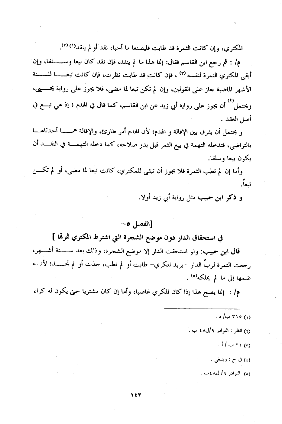 ] الفصل 5 - في استحقاق الدار دون موضع الشجرة التي اشترط المكتري ثمرتها [