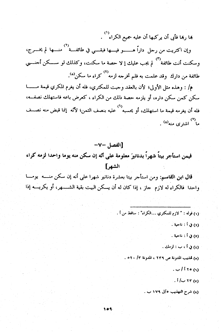 ] الفصل -7 - فيمن استأجر بيتاً شهراً بدنانيرَ معلومة على أنّه إن سكن منه يوما واحدا لزمه كراء الشهر [