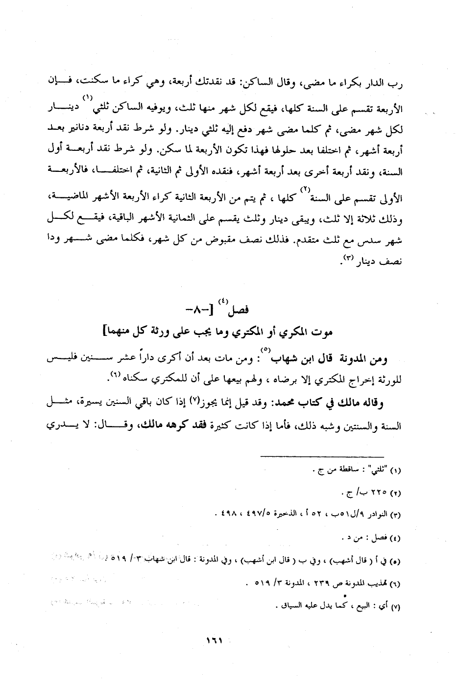 فصل]-8 - موت المكري أو المكتري وما يجب على ورثة كل منهما [