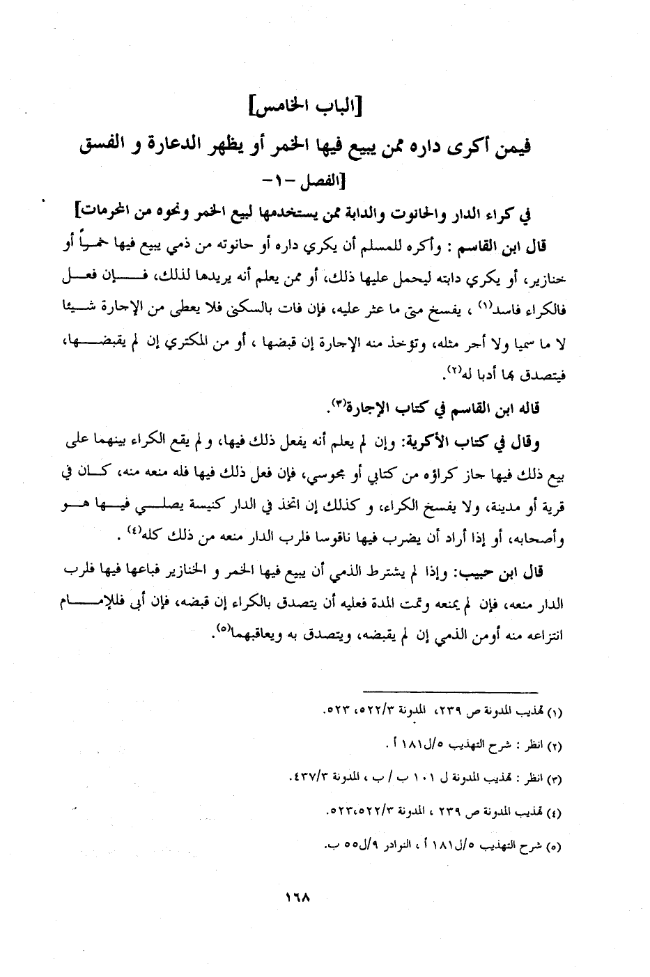 ] الفصل -1 - في كراء الدار والحانوت والدابة ممن يستخدمها لبيع الخمر ونحوه من المحرمات [