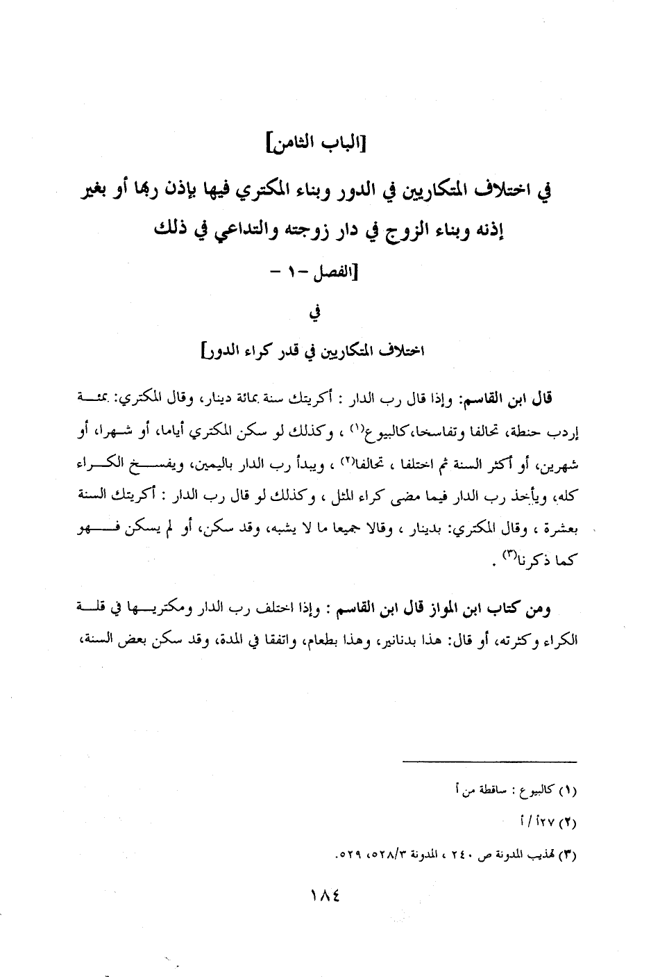 في اختلاف المتكاريين في قدر كراء الدور]