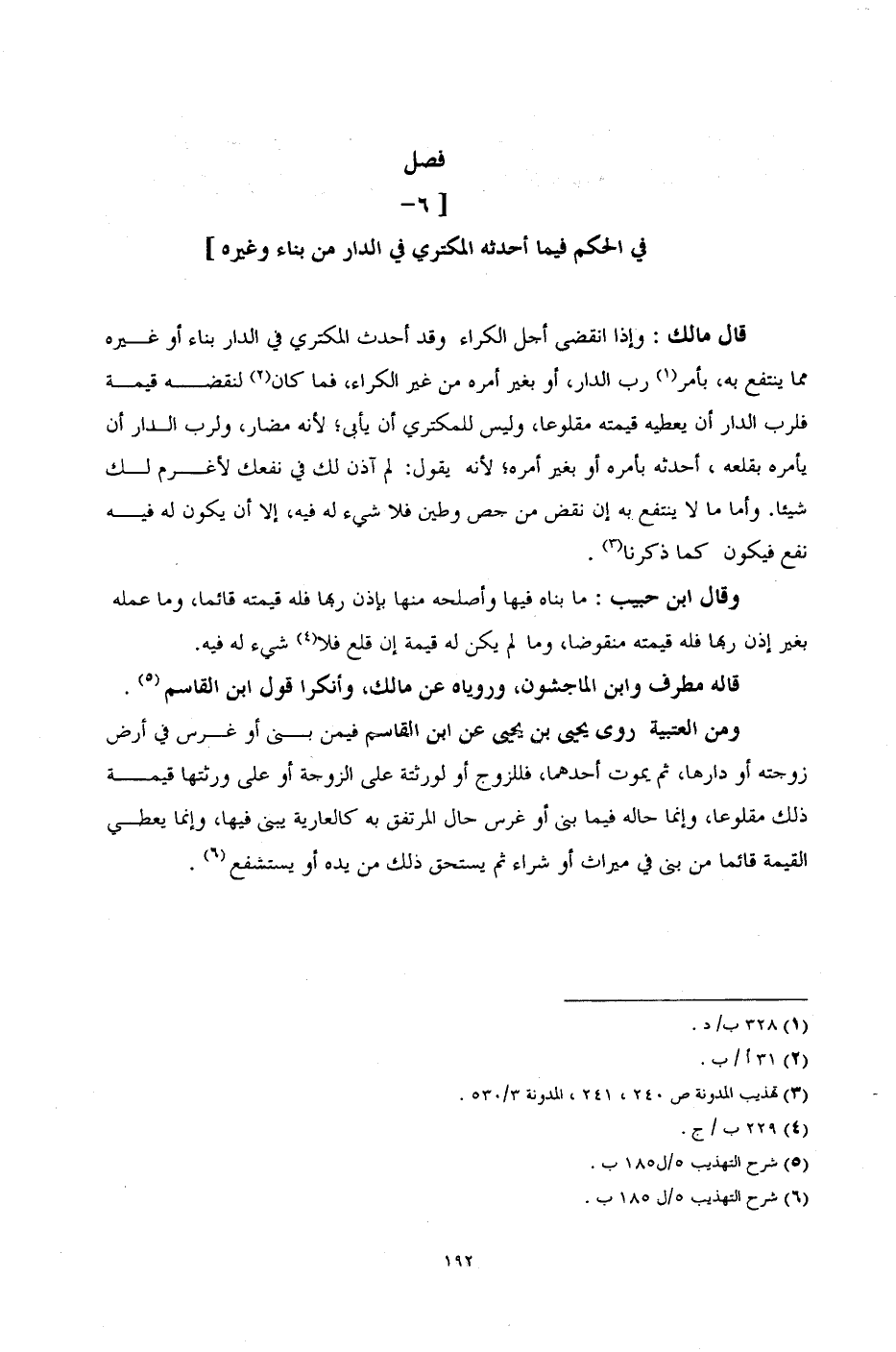 فصل [6 - في الحكم فيما أحدثه المكتري في الدار من بناء وغيره]