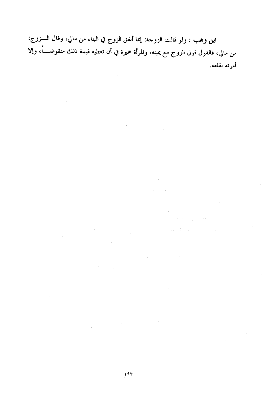 ابن وهب: ولو قالت الزوجة: إنما أنفق الزوج في البناء من مالي، وقال الزوج: من مالي، فالقول قول الزوج مع يمينه، والمرأة مخيرة في أن تعطيه قيمة ذلك منقوصاً، وإلا أمرته بقلعه.