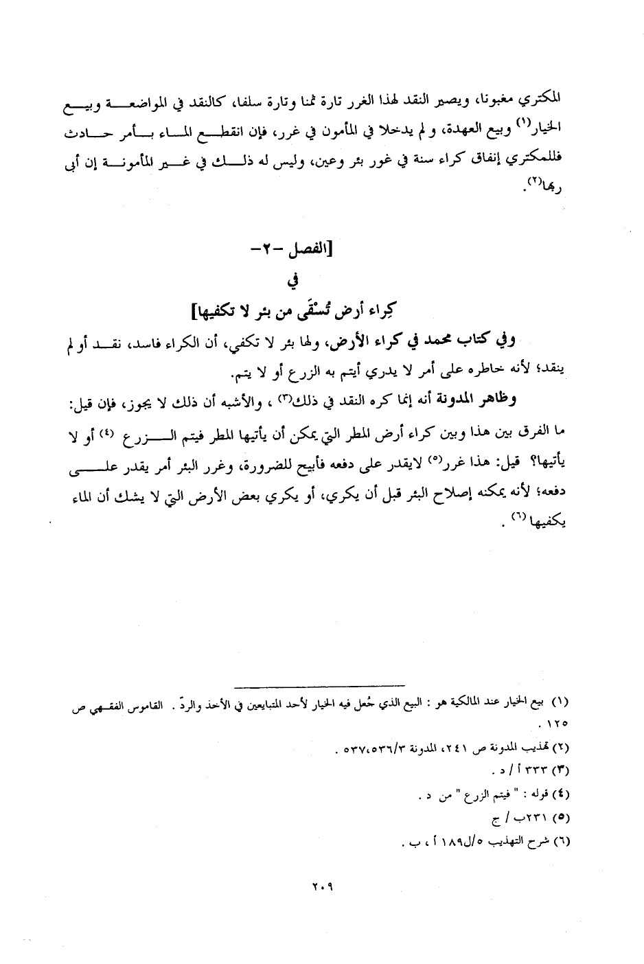 وفي كتاب محمد في كراء الأرض، ولها بئر لا تكفي، أن الكراء فاسد، نقد أو لم ينقد؛ لأنه خاطره على أمر لا يدري أيتم به الزرع أو لا يتم.