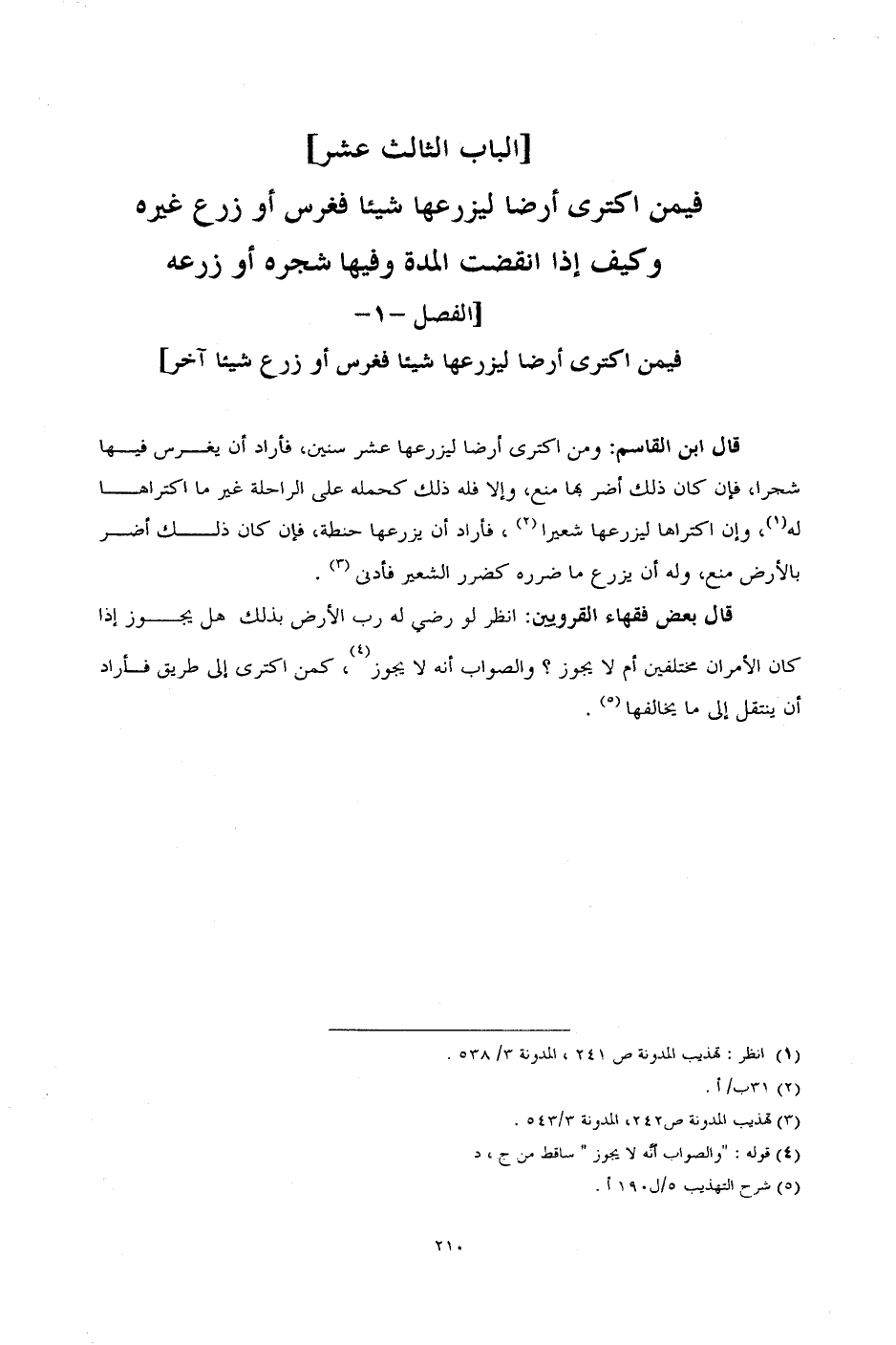 قال ابن القاسم: ومن اكترى أرضاً ليزرعها عشر سنين، فأراد أن يغرس فيها شجراً، فإن كان ذلك أضر بها منع، وإلا فله ذلك كحمله على الراحلة غير ما اكتراها له، وإن اكتراها ليزرعها شعيراً، فأراد أن يزرعها حنطة، فإن كان ذلك أضر بالأرض منع، وله أن يزرع ما ضرره كضرر الشعير فأدنى.
