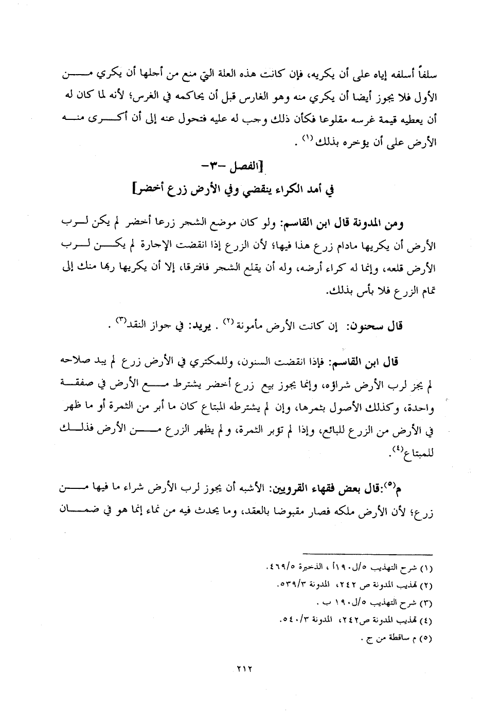 م: قال بعض فقهاء القرويين: الأشبه أن يجوز لرب الأرض شراء ما فيها من زرع؛ لأن الأرض ملكه فصار مقبوضاً بالعقد، وما يحدث فيه من نماء إنما هو في ضمان