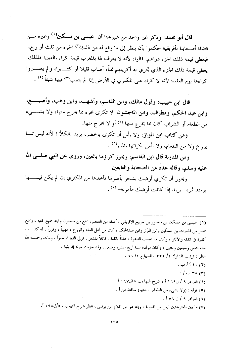 قال ابن حبيب: وقول مالك، وابن القاسم، وأشهب، وابن وهب، وأصبغ، وابن عبد الحكم، ومطرف، وابن الماجشون: لا تكري بجزء مما يخرج منها، ولا بشيء من الطعام أو الشراب كان مما يخرج منها أو لا يخرج منها.