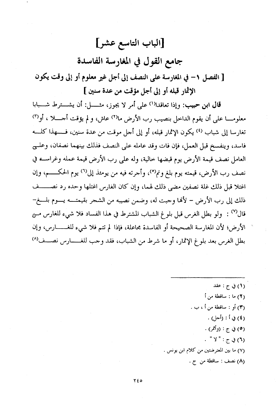 [الفصل 1 - في المغارسة على النصف إلى أجل غير معلوم أو إلى وقت يكون