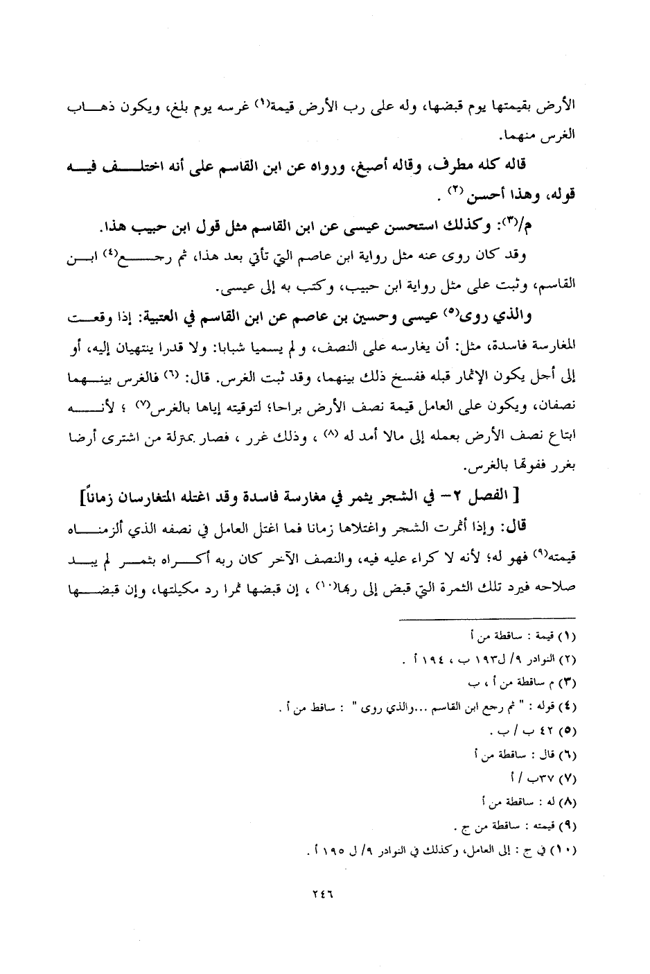 [الفصل 2 - في الشجر يثمر في مغارسة فاسدة وقد اغتله المتغارسان زماناً]