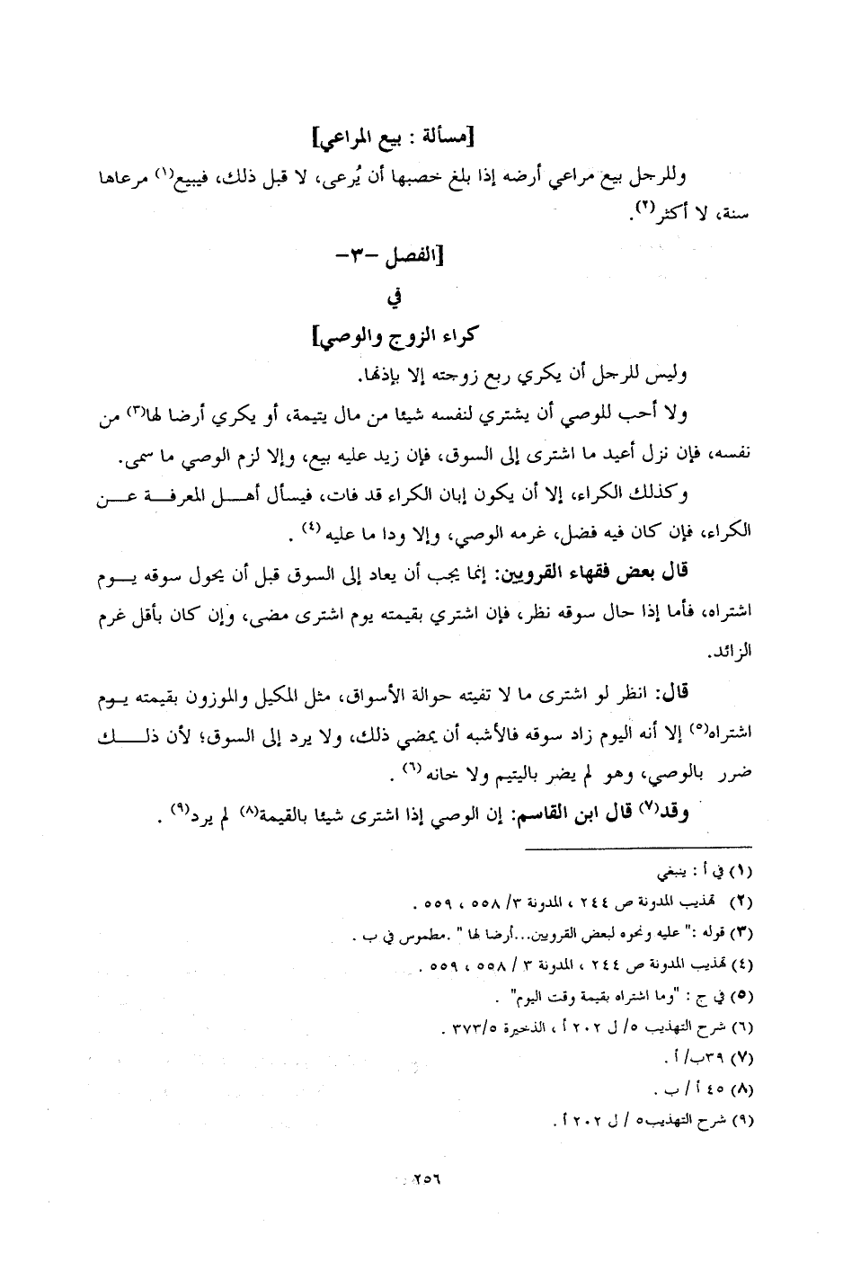 قال: انظر لو اشترى ما لا تفيته حوالة الأسواق، مثل المكيل والموزون بقيمته يوم اشتراه إلا أنه اليوم زاد سوقه فالأشبه أن يمضي ذلك، ولا يرد إلى السوق؛ لأن ذلك ضرر بالوصي، وهو لم يضر باليتيم ولا خانه.