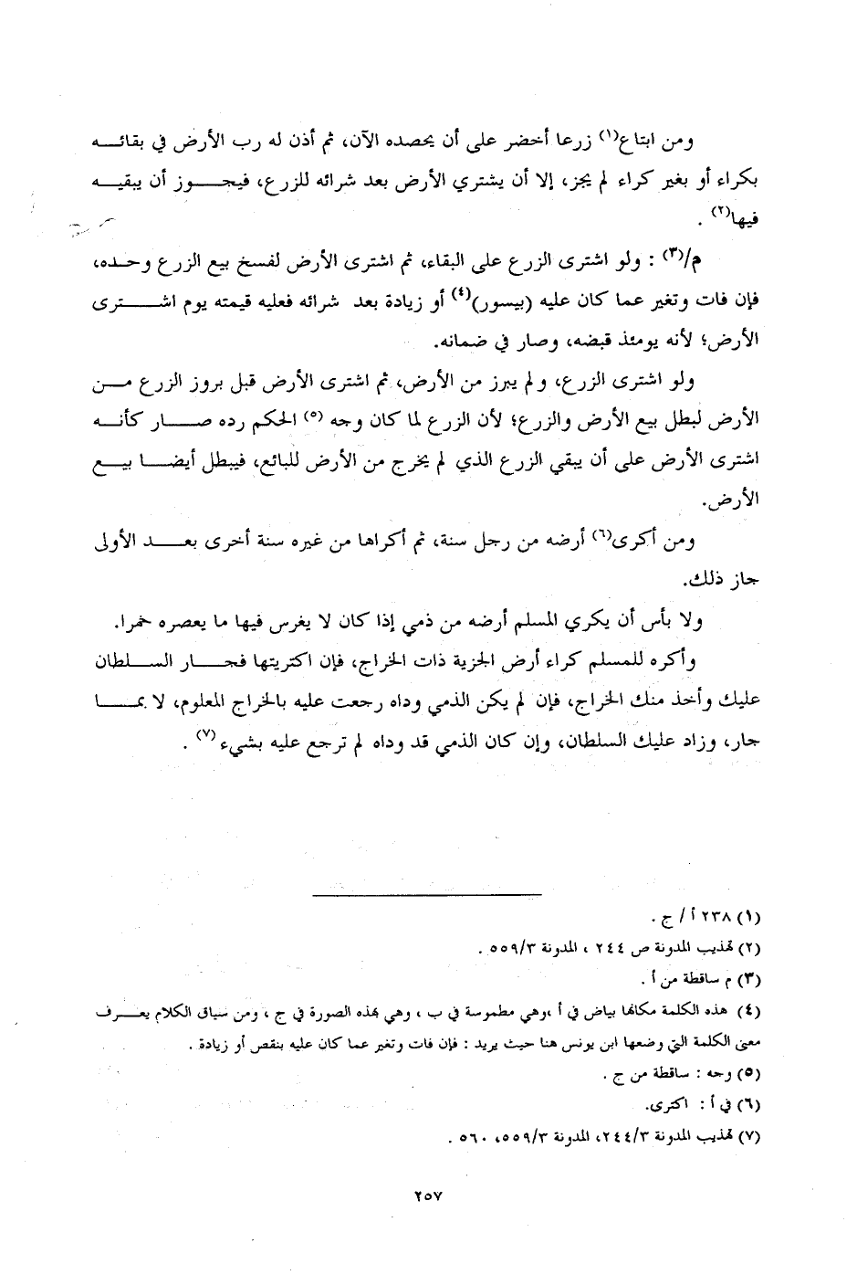 وأكره للمسلم كراء أرض الجزية ذات الخراج، فإن اكتريتها فجاز السلطان عليك وأخذ منك الخراج، فإن لم يكن الذمي وداه رجعت عليه بالخراج المعلوم، لا بما جار، وزاد عليك السلطان، وإن كان الذمي قد وداه لم ترجع عليه بشيء.
