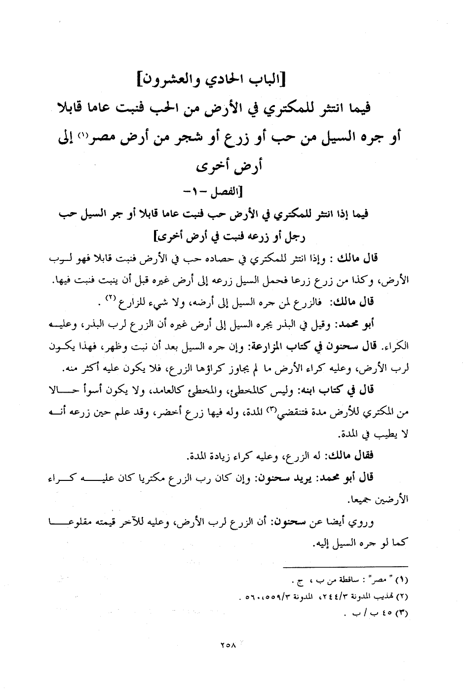 قال أبو محمد: يريد سحنون: وإن كان رب الزرع مكترياً كان عليه كراء الأرضين جميعاً.