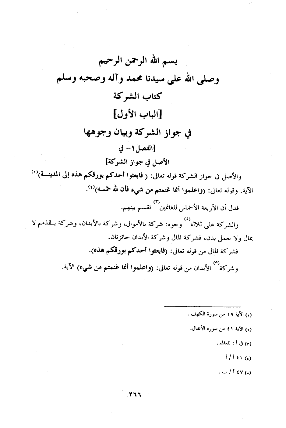 والأصل في جواز الشركة قوله تعالى: {فَابْعَثُوا أَحَدَكُمْ بِوَرِقِكُمْ هَذِهِ إِلَى الْمَدِينَةِ} [الكهف:19]. وقوله تعالى: {وَاعْلَمُوا أَنَّمَا غَنِمْتُمْ مِنْ شَيْءٍ فَأَنَّ لِلَّهِ خُمُسَهُ} [الأنفال:41].
