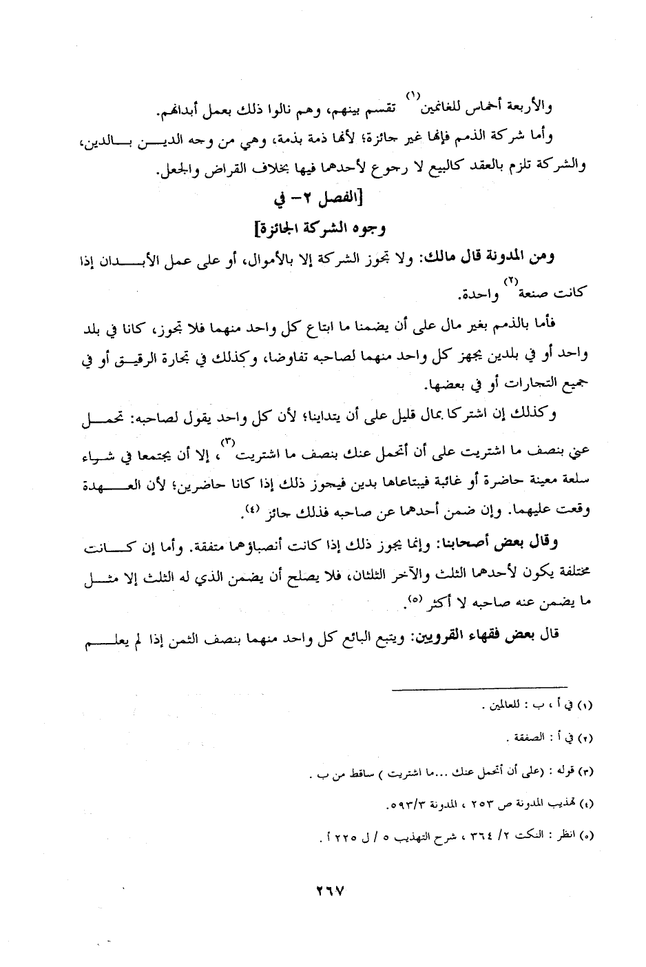 ومن المدونة قال مالك: ولا تجوز الشركة إلا بالأموال، أو على عمل الأبدان إذا كانت صنعة واحدة.