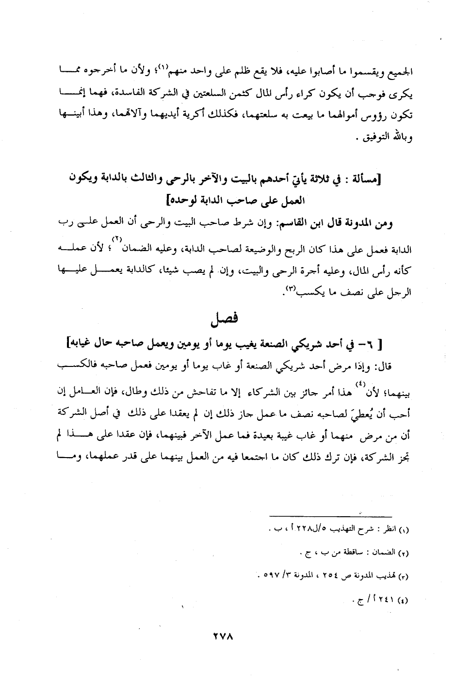 [6_ في أحد شريكي الصنعة يغيب يوما أو يومين ويعمل صاحبه حال غيابه]