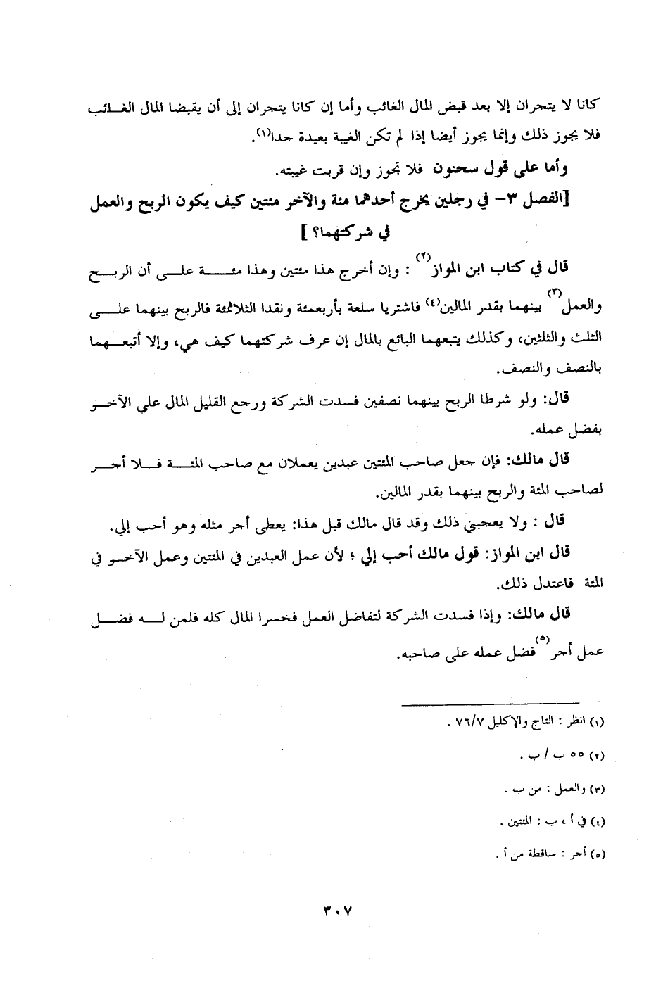 [الفصل 3 - في رجلين يخرج أحدهما مئة والآخر مئتين كيف يكون الربح والعمل