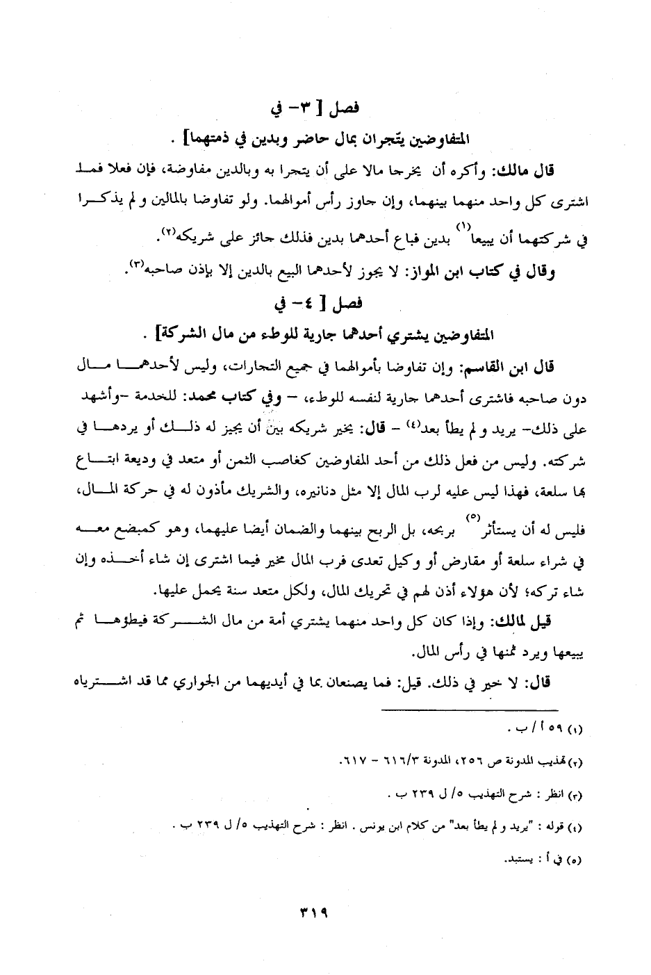 [الفصل 4 - في المتفاوضين يشتري أحدهما جارية للوطء من مال الشركة].