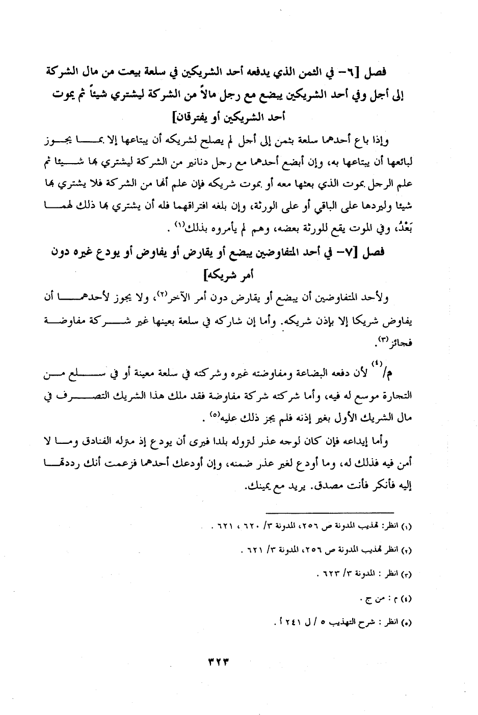 [الفصل 6 - في الثمن الذي يدفعه أحد الشريكين في سلعة بيعت من مال الشركة إلى أجل وفي أحد الشريكين يبضع مع رجل مالًا من الشركة ليشتري شيئًا ثم يموت أحد الشريكين أويفترقان]