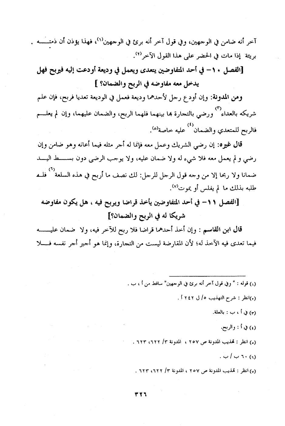 [الفصل 11 - في أحد المتفاوضين يأخذ قراضا ويربح فيه، هل يكون مفاوضه شريكا له في الربح والضمان؟]