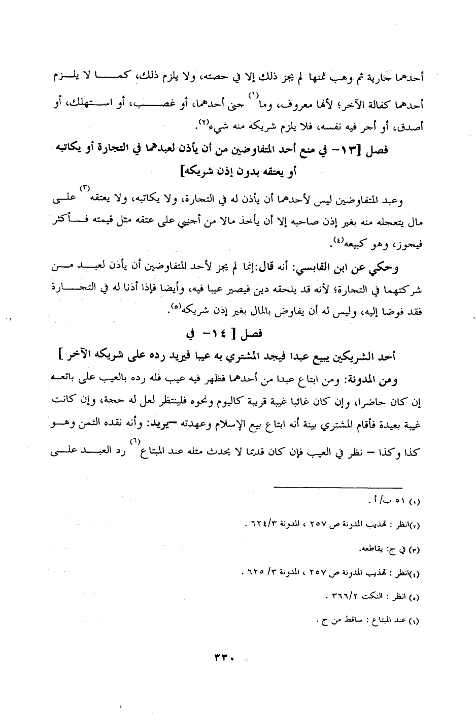 [الفصل 14 - في أحد المتفاوضين الشريكين بيبع عبدا فيجد المشتري به عيبًا فيريد رده على شركه الآخر]