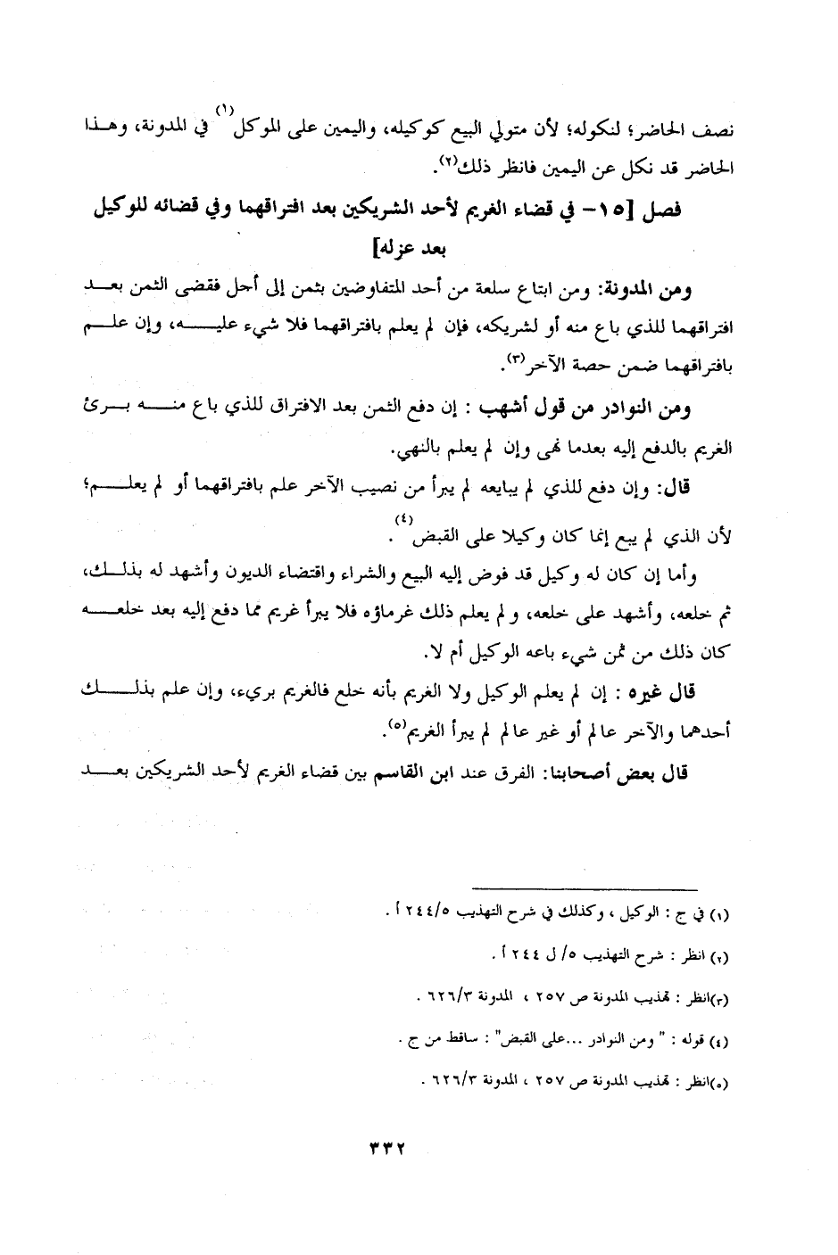 [الفصل 15 - في قضاء الغريم لأحد الشريكين بعد افتراقهما وفي قضائه للوكيل بعد عزله]