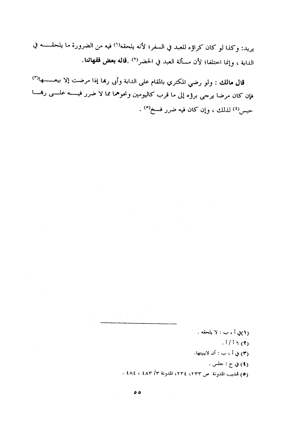 يريد: وكذا لو كان كراؤه للعبد في السفر؛ لأنه يلحقه فيه من الضرورة ما يلحقه في الدابة، وإنما اختلفا؛ لأن مسألة العبد في الحضر. قاله بعض فقهائنا.
