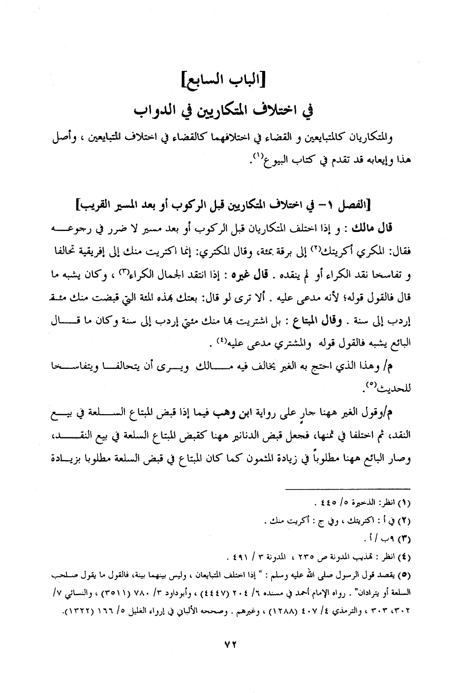 م/ وهذا الذي احتج به الغير يخالف فيه مالك ويرى أن يتحالفا ويتفاسخا للحديث.