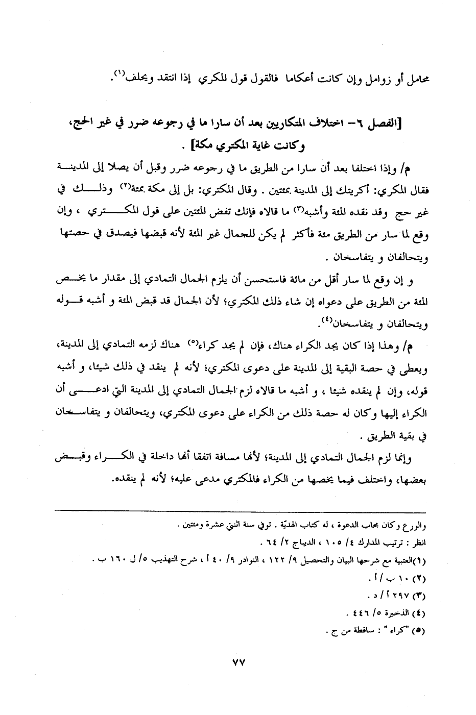 [الفصل 6 - اختلاف المتكاريين بعد أن سارا ما في رجوعه ضرر في غير الحج،