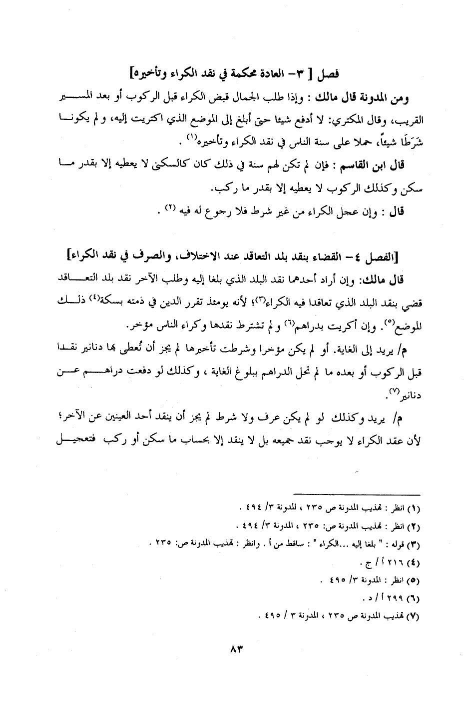 فصل [3 - العادة محكمة في نقد الكراء وتأخيره]