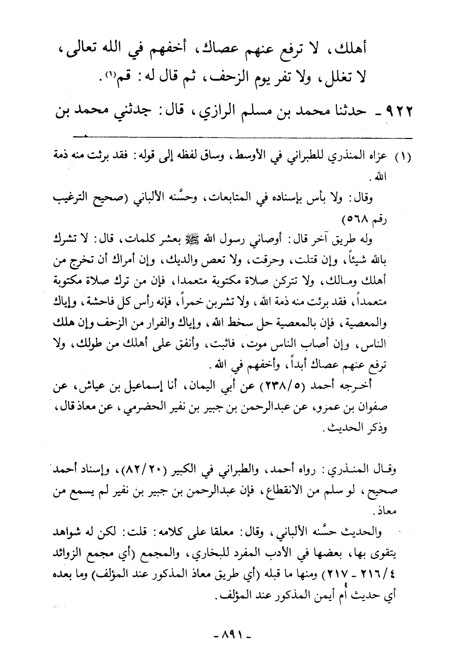 922 - حَدَّثَنَا مُحَمَّدُ بْنُ مُسْلِمٍ الرَّازِيُّ، قَالَ: حَدَّثَنِي مُحَمَّدُ بْنُ مُحَمَّدِ بْنِ مُوسَى بْنِ أَعْيَنَ، قَالَ: حَدَّثَنَا أَبِي، عَنْ عَمْرِو بْنِ الْحَارِثِ، عَنْ عَمْرِو بْنِ شُعَيْبٍ، أَنَّهُ سَمِعَ مُحَمَّدَ بْنَ عَبْدِ اللَّهِ بْنِ عَمْرِو بْنِ الْعَاصِ، يُخْبِرُ عَنْ أَبِيهِ عَبْدِ اللَّهِ بْنِ عَمْرِو بْنِ الْعَاصِ رَضِيَ اللَّهُ عَنْهُ، عَنْ رَسُولِ اللَّهِ صَلَّى اللهُ عَلَيْهِ وَسَلَّمَ أَنَّهُ قَالَ: «§مَنْ تَرَكَ الصَّلَاةَ سُكْرًا مَرَّةً وَاحِدَةً كَانَ كَأَنَّمَا كَانَتْ لَهُ الدُّنْيَا فَسُلِبَهَا، وَمَنْ تَرَكَ الصَّلَاةَ أَرْبَعَ مِرَارٍ كَانَ حَقًّا عَلَى اللَّهِ تَعَالَى أَنْ يَسْقِيَهُ مِنْ طِينَةِ الْخَبَالِ» قَالَ: وَمَا طِينَةُ الْخَبَالِ قَالَ: «عُصَارَةُ أَهْلِ جَهَنَّمَ»