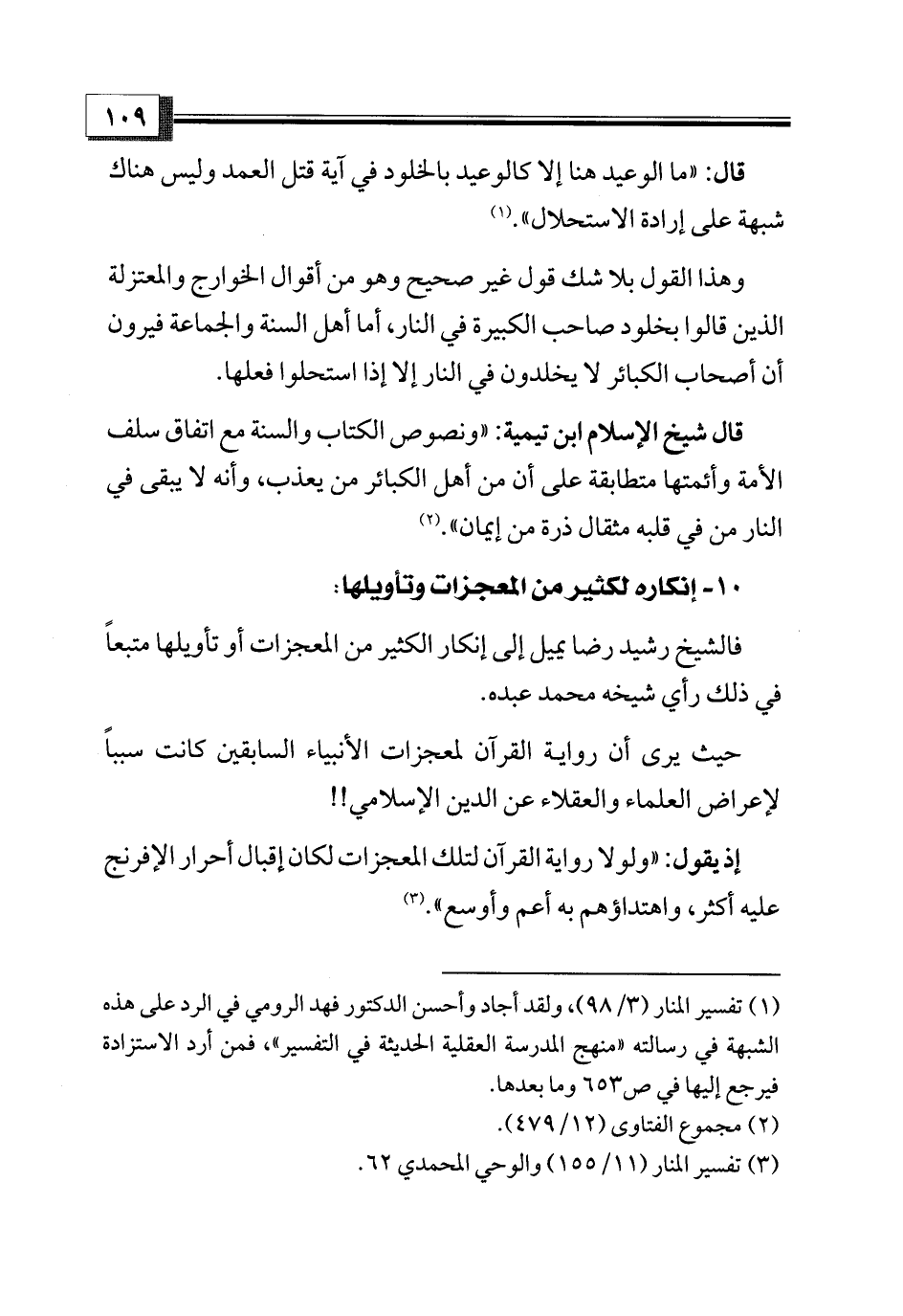 (¬1) تفسير المنار (3/ 98)، ولقد أجاد وأحسن الدكتور فهد الرومي في الرد على هذه الشبهة في رسالته «منهج المدرسة العقلية الحديثة في التفسير»، فمن أرد الاستزادة فيرجع إليها في ص 653 وما بعدها.