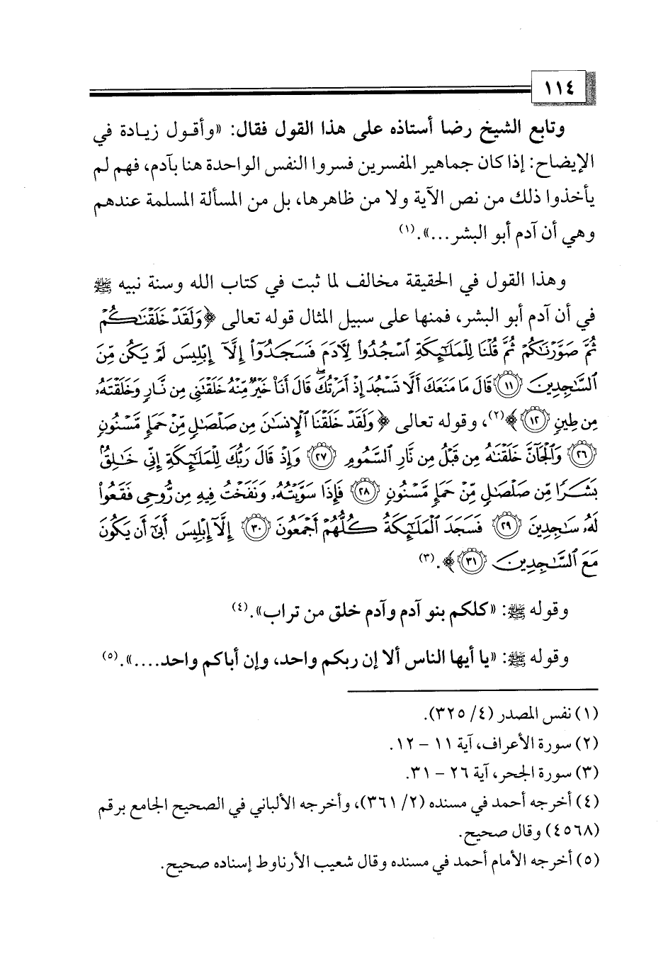 وتابع الشيخ رضا أستاذه على هذا القول فقال: «وأقول زيادة في الإيضاح: إذا كان جماهير المفسرين فسروا النفس الواحدة هنا بآدم، فهم لم يأخذوا ذلك من نص الآية ولا من ظاهرها، بل من المسألة المسلمة عندهم وهي أن آدم أبو البشر ... ». (¬1)