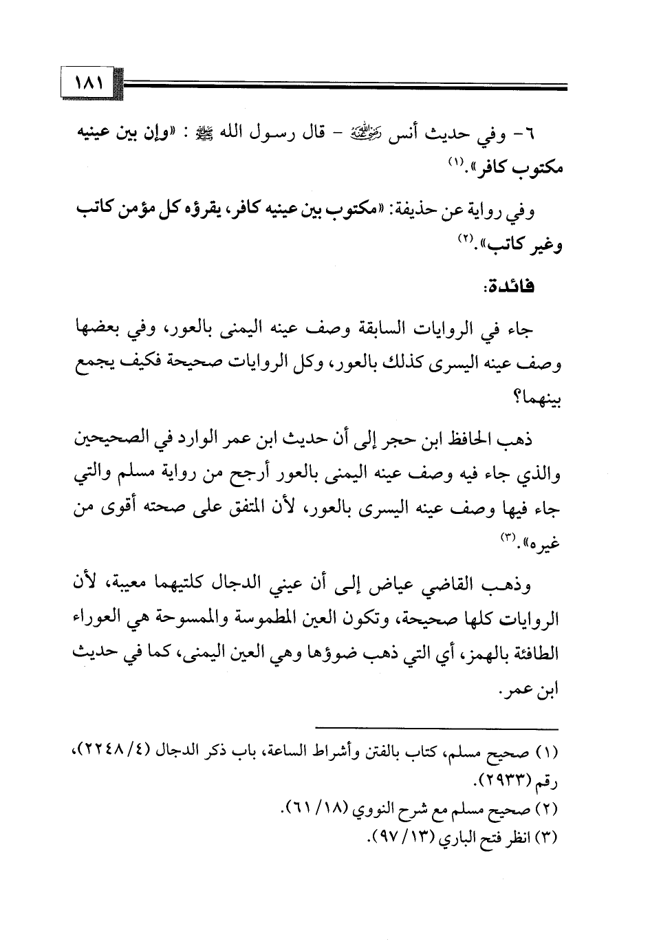 (¬1) صحيح مسلم، كتاب بالفتن وأشراط الساعة، باب ذكر الدجال (4/ 2248)، رقم (2933).