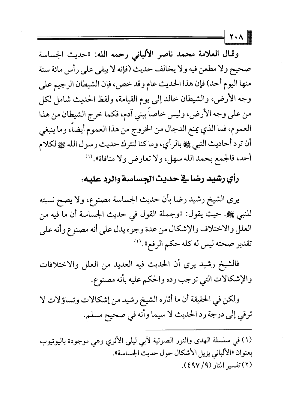 (¬1) في سلسلة الهدى والنور الصوتية لأبي ليلي الأثري وهي موجودة باليوتيوب بعنوان «الألباني يزيل الأشكال حول حديث الجساسة».