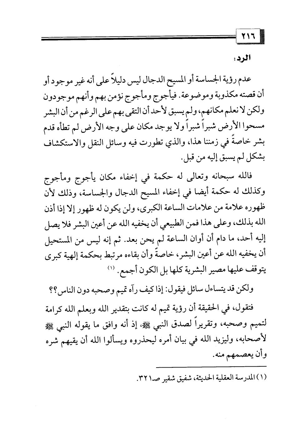 (¬1) المدرسة العقلية الحديثة، شفيق شقير صـ 321.