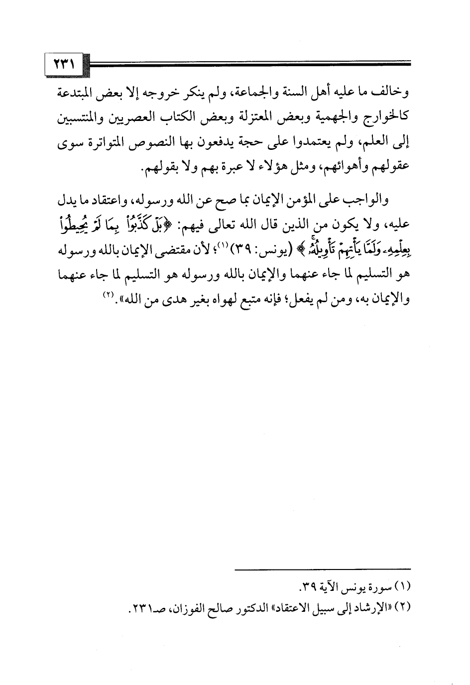 (¬2) «الإرشاد إلى سبيل الاعتقاد» الدكتور صالح الفوزان، صـ 231.