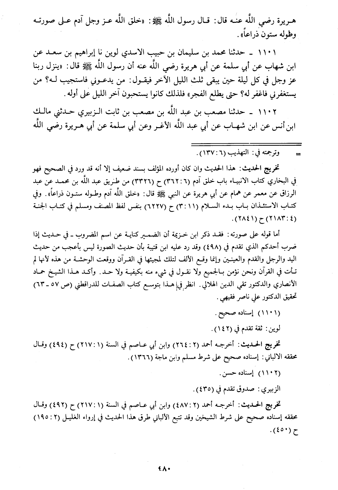 1101 - حَدَّثَنَا مُحَمَّدُ بْنُ سُلَيْمَانَ بْنِ حَبِيبٍ الْأَسَدِيُّ لُوَيْنٌ، نا إِبْرَاهِيمُ بْنُ سَعْدٍ، عَنِ ابْنِ شِهَابٍ، عَنْ أَبِي سَلَمَةَ، عَنْ أَبِي هُرَيْرَةَ رَضِيَ اللَّهُ عَنْهُ أَنَّ رَسُولَ اللَّهِ صَلَّى اللهُ عَلَيْهِ وَسَلَّمَ قَالَ: " §يَنْزِلُ رَبُّنَا عَزَّ وَجَلَّ فِي كُلِّ لَيْلَةٍ حِينَ يَبْقَى ثُلُثُ اللَّيْلِ الْآخِرُ فَيَقُولُ: مَنْ يَدْعُونِي فَأَسْتَجِيبَ لَهُ؟ مَنْ يَسْتَغْفِرُنِي فَأَغْفِرَ لَهُ؟ حَتَّى يَطْلُعَ الْفَجْرُ فَلِذَلِكَ كَانُوا يَسْتَحِبُّونَ آخِرَ اللَّيْلِ عَلَى أَوَّلِهِ "