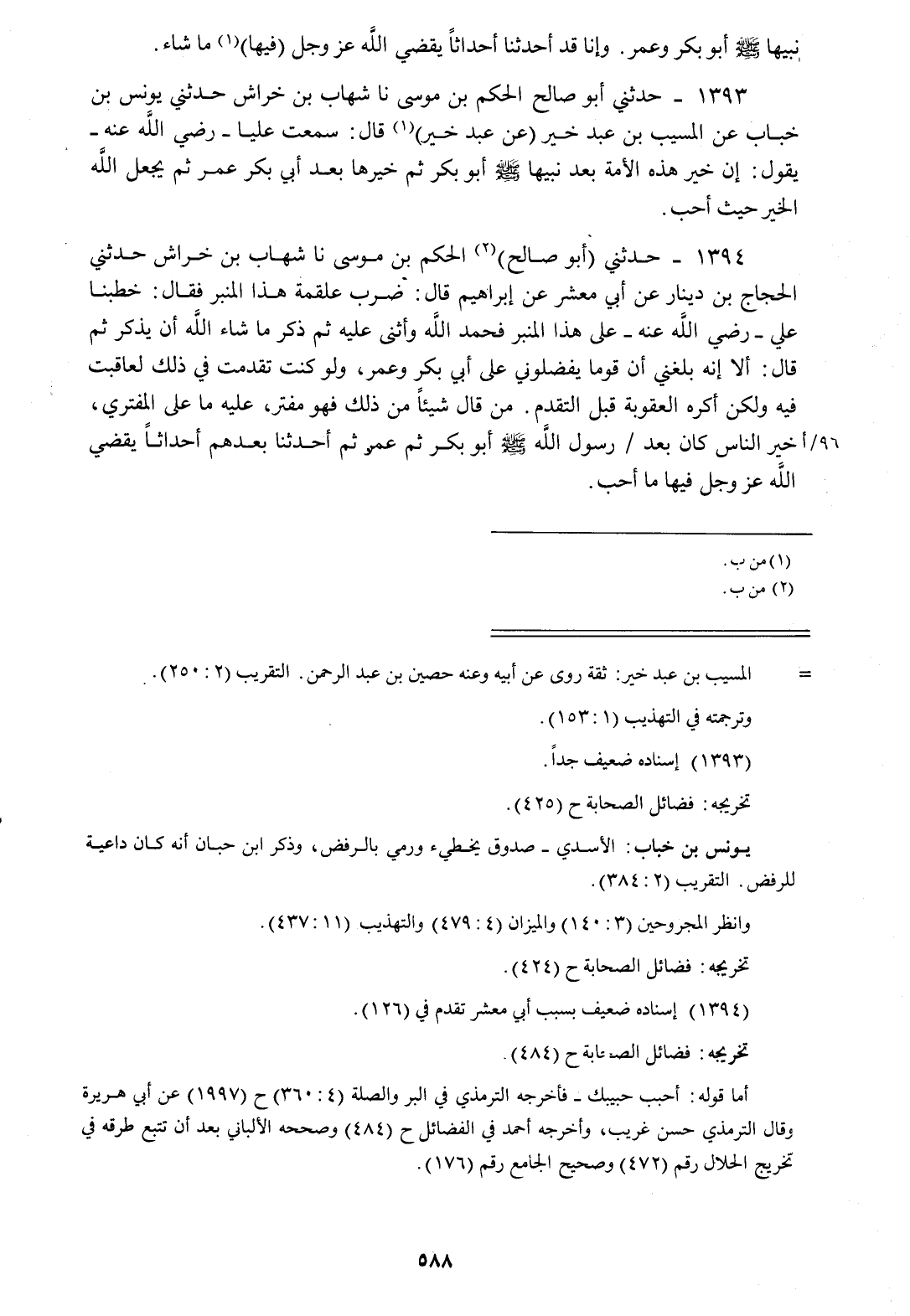 1393 - حَدَّثَنِي أَبُو صَالِحٍ الْحَكَمُ بْنُ مُوسَى، نا شِهَابُ بْنُ خِرَاشٍ، حَدَّثَنِي يُونُسُ بْنُ خَبَّابٍ، عَنِ الْمُسَيِّبِ بْنِ عَبْدِ خَيْرٍ، عَنْ عَبْدِ خَيْرٍ، قَالَ: سَمِعْتُ عَلِيًّا رَضِيَ اللَّهُ عَنْهُ يَقُولُ «إِنَّ §خَيْرَ هَذِهِ الْأُمَّةِ بَعْدَ نَبِيِّهَا صَلَّى اللهُ عَلَيْهِ وَسَلَّمَ أَبُو بَكْرٍ، ثُمَّ خَيْرُهَا بَعْدَ أَبِي بَكْرٍ عُمَرُ ثُمَّ يَجْعَلُ اللَّهُ الْخَيْرَ حَيْثُ أَحَبَّ»