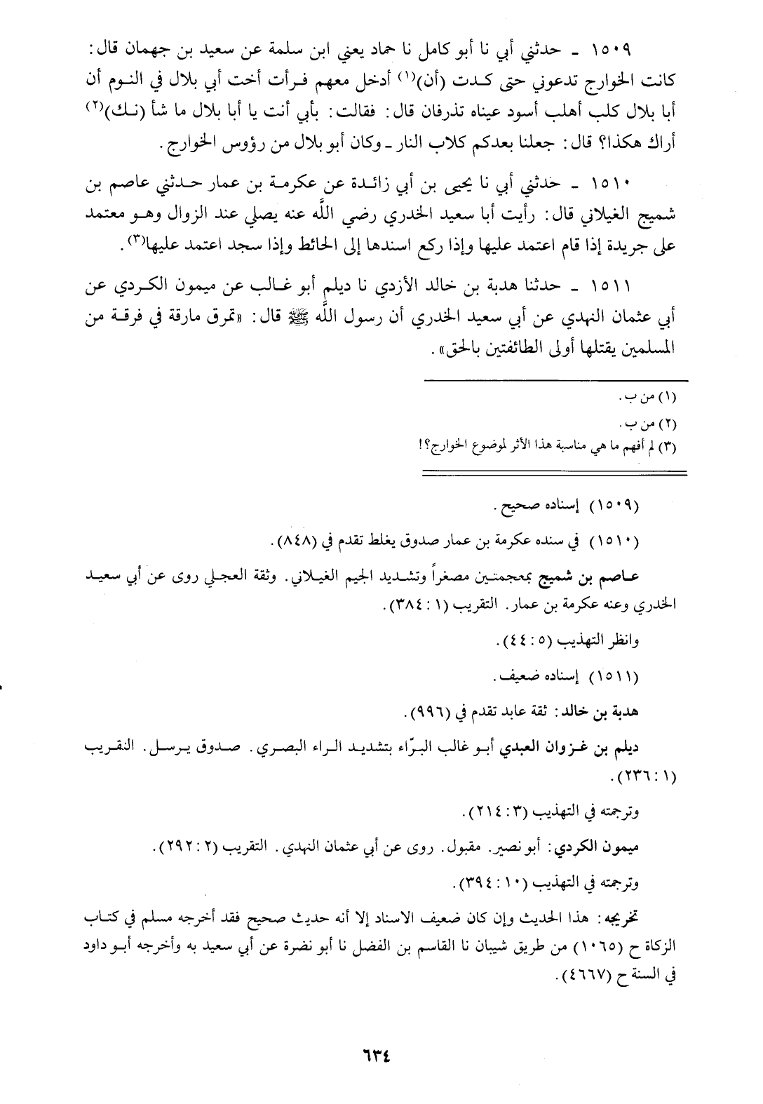 1511 - حَدَّثَنَا هُدْبَةُ بْنُ خَالِدٍ الْأَزْدِيُّ، نا دَيْلَمٌ أَبُو غَالِبٍ، عَنْ مَيْمُونٍ الْكُرْدِيِّ، عَنْ أَبِي عُثْمَانَ النَّهْدِيِّ، عَنْ أَبِي سَعِيدٍ الْخُدْرِيِّ، أَنَّ رَسُولَ اللَّهِ صَلَّى اللهُ عَلَيْهِ وَسَلَّمَ قَالَ: «§تَمْرُقُ مَارِقَةٌ فِي فِرْقَةٍ مِنَ الْمُسْلِمِينَ يَقْتُلُهَا أَوْلَى الطَّائِفَتَيْنِ بِالْحَقِّ»