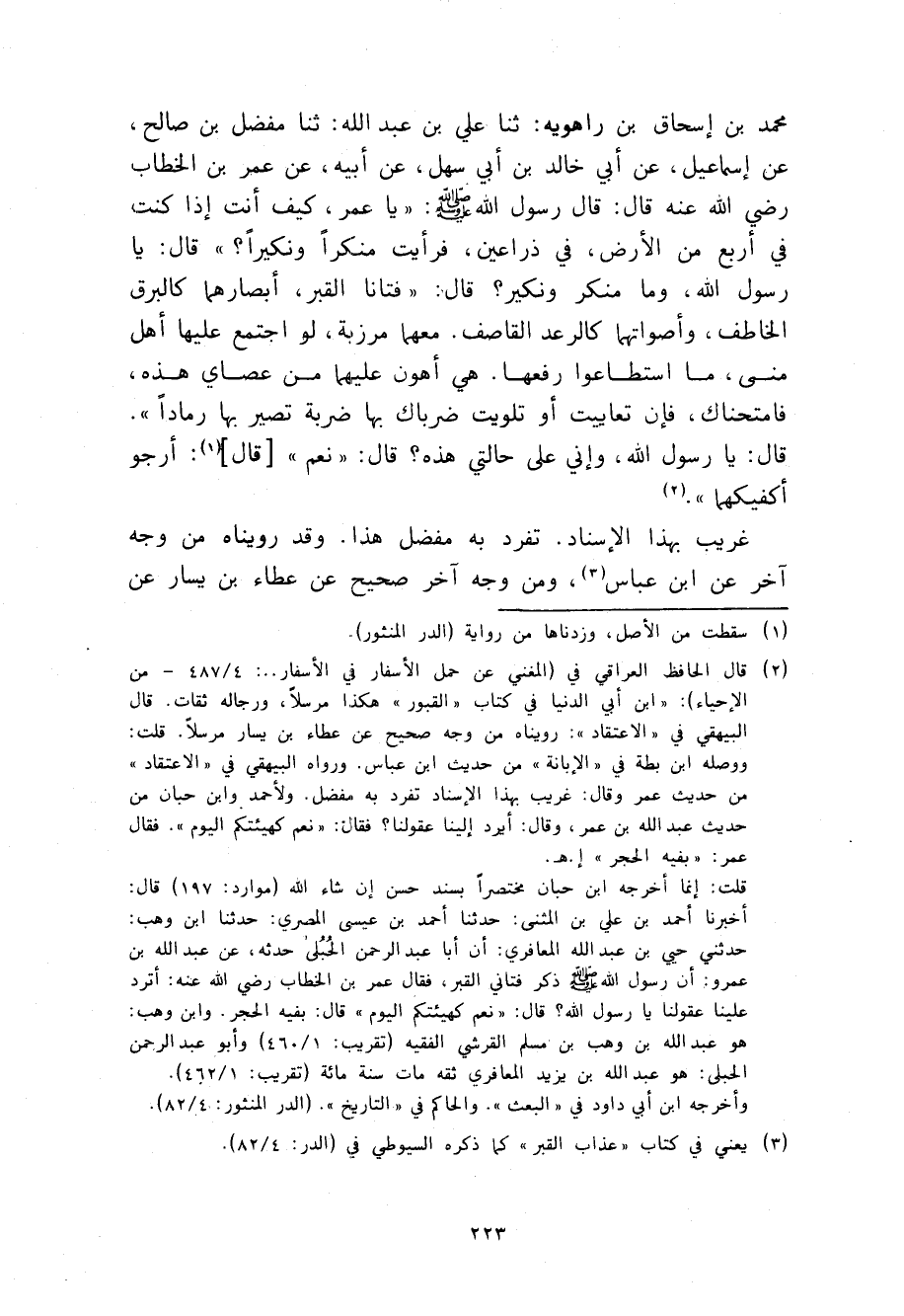 هَذَا وَقَدْ رُوِّينَاهُ مِنْ وَجْهٍ آخَرَ، عَنِ ابْنِ عَبَّاسٍ وَمِنْ وَجْهٍ آخَرَ صَحِيحٍ، عَنْ عَطَاءِ بْنِ يَسَارٍ عَنِ -[224]- النَّبِيِّ صَلَّى اللهُ عَلَيْهِ وَسَلَّمَ مُرْسَلًا فِي قِصَّةِ عُمَرَ، وَقَالَ: §«ثَلَاثَةُ أَذْرُعٍ وَشِبْرٍ فِي عَرْضِ ذِرَاعٍ وَشِبْرٍ» وَلَمْ يَذْكُرِ الْمِرْزَبَّةَ