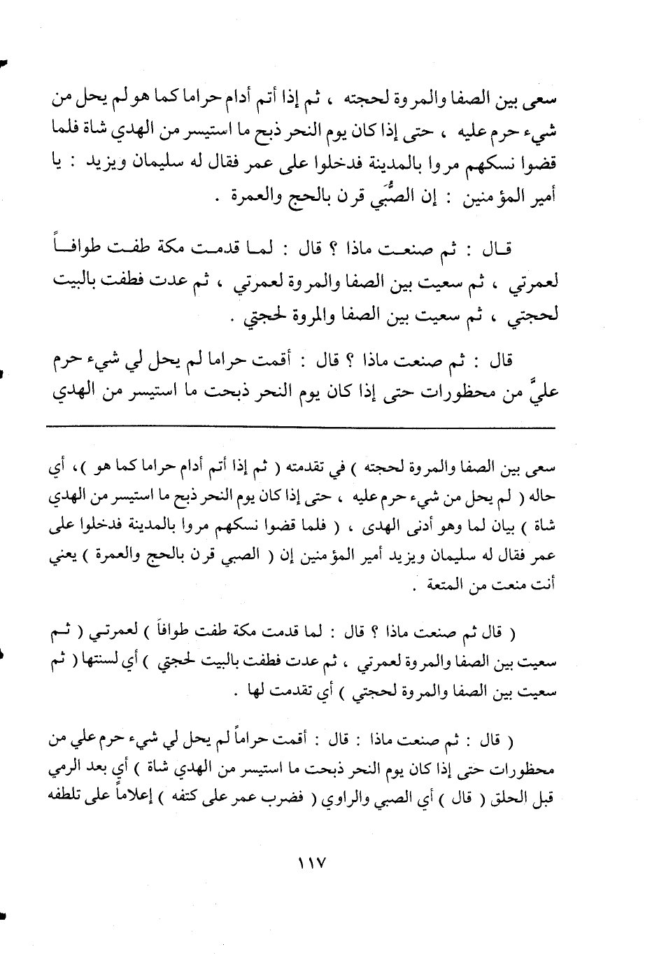 سعى بين الصفا والمروة لحجته) في تقدمته (ثم إذا أتم أدام حراماً كما هو)، أي حاله (لم يحل من شيء حرم عليه، حتى إذا كان يوم النحر ذبح ما استيسر من الهدي شاة) بيان لما وهو أدنى الهدى، (فلما قضوا نسكهم مروا بالمدينة فدخلوا على عمر فقال له سليمان ويزيد أمير المؤمنين إن (الصبي قرن بالحج والعمرة) يعني أنت منعت من المتعة.