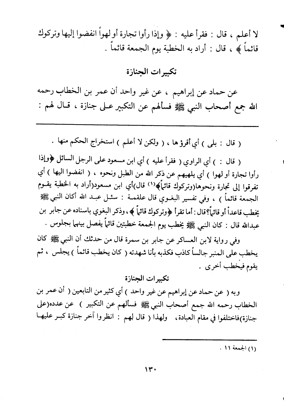 وبه (عن حماد عن إبراهيم عن غير واحد) أي كثير من التابعين (أن عمر بن الخطاب رحمه الله جمع أصحاب النبي صلى الله عليه وسلم فسألهم عن التكبير) عن عدده (على جنازة) فاختلفوا في مقام العبادة، ولهذا (قال لهم: انظروا آخر جنازة كبر عليها