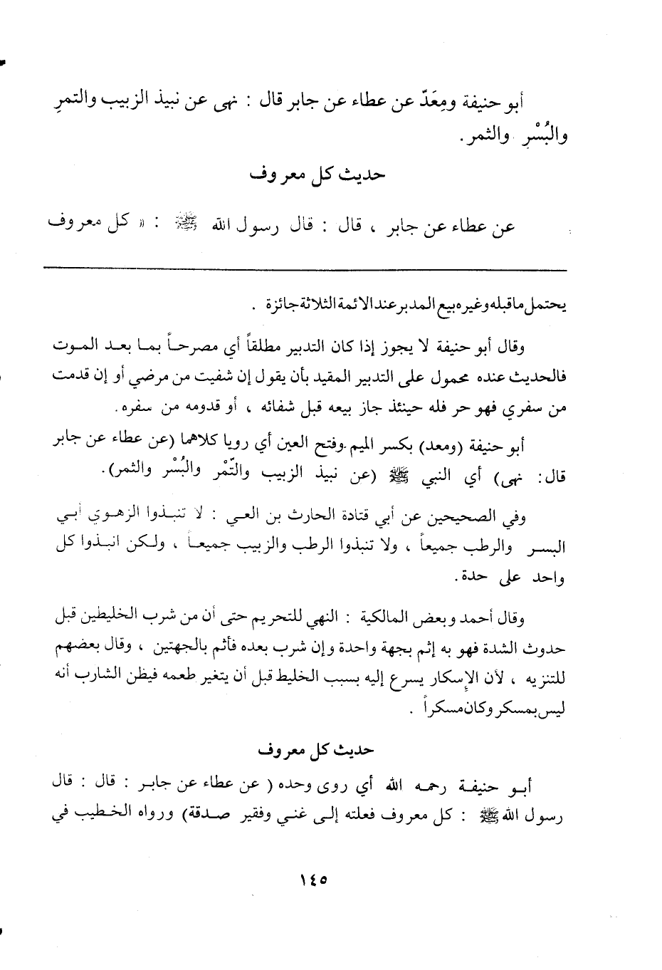 أبو حنيفة رحمه الله أي روى وحده (عن عطاء بن جابر: قال: قال رسول الله صلى الله عليه وسلم: كل معروف فعلته إلى غني وفقير صدقة) ورواه الخطيب في