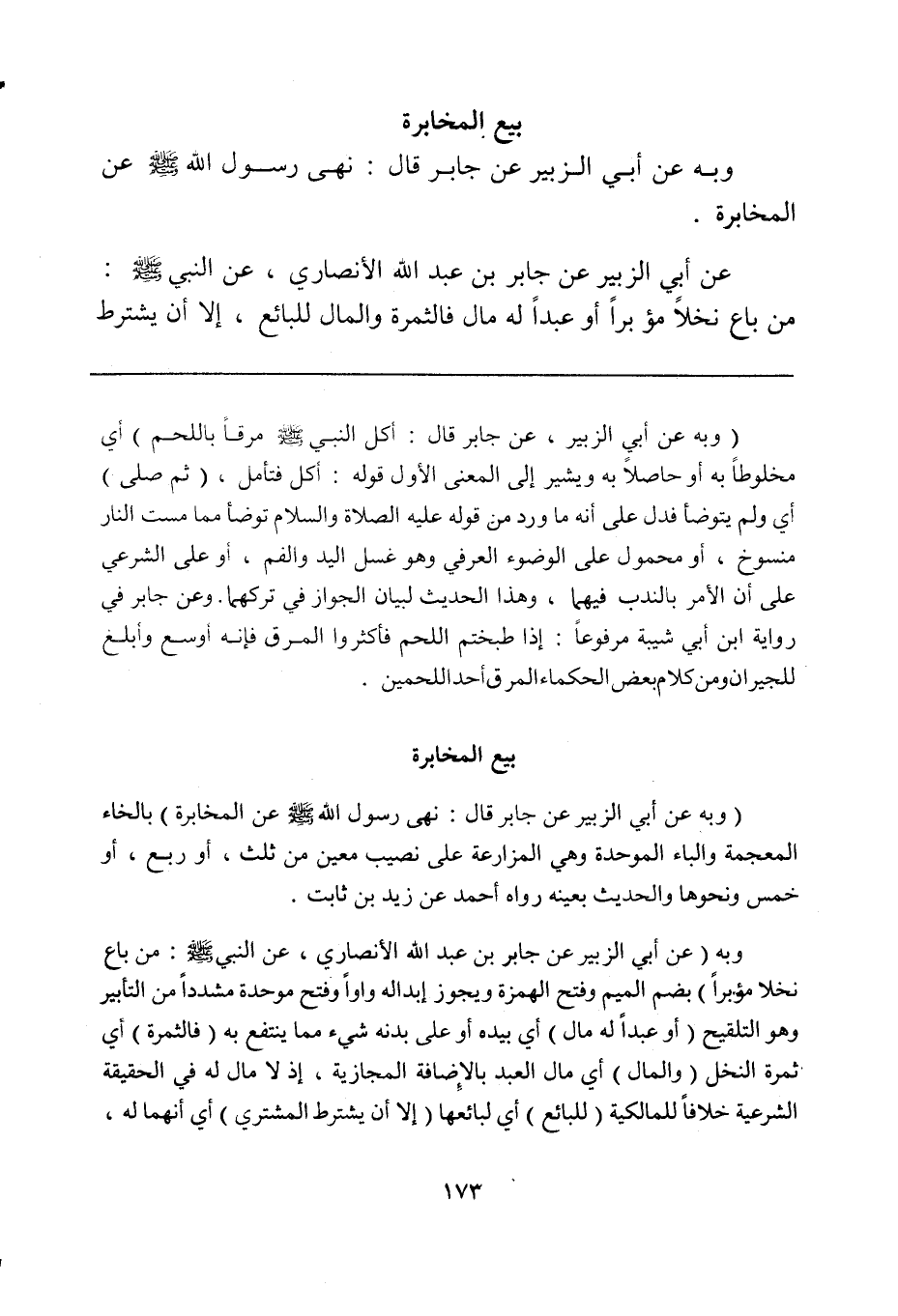 وبه (عن أبي الزبير عن جابر بن عبد الله الأنصاري، عن النبي صلى الله عليه وسلم: من باع نخلاً مؤبراً) بضم الميم ويجوز إبداله واواً وفتح موحدة مشدداً من التأبير وهو التلقيح (أو عبداً له مال) أي بيده أو على بدنه شيء مما ينتفع به (فالثمرة) أي ثمرة النخل (والمال) أي مال العبد بالإضافة المجازية، إذ لا مال له في الحقيقة الشرعية خلافاً للمالكية (للبائع) أي لبائعها (إلا أن يشترط المشتري) أي أنهما له،