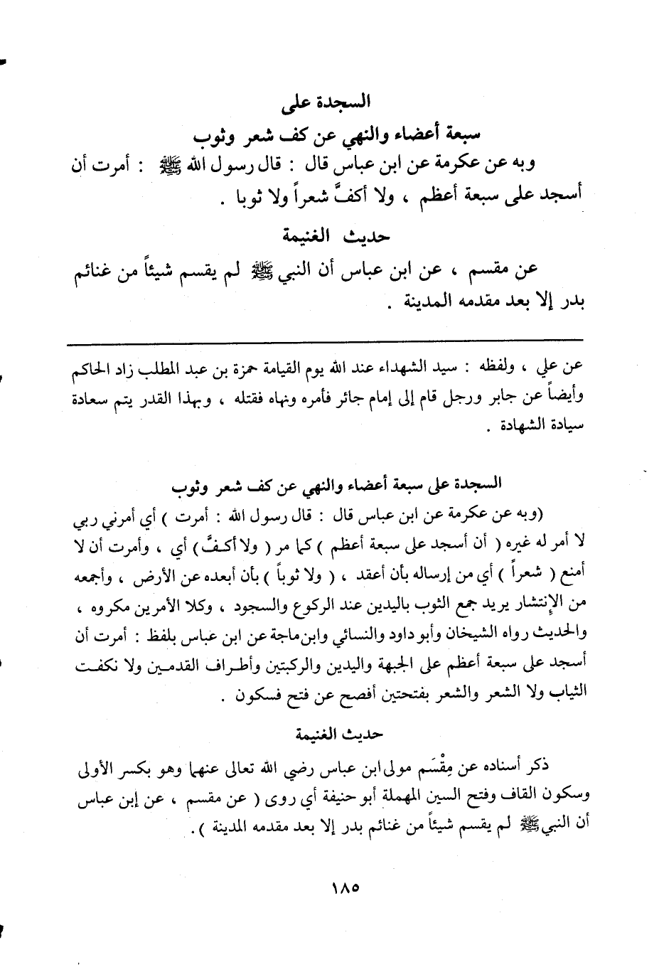 - السجدة على سبعة أعضاء والنهي عن كف شعر وثوب